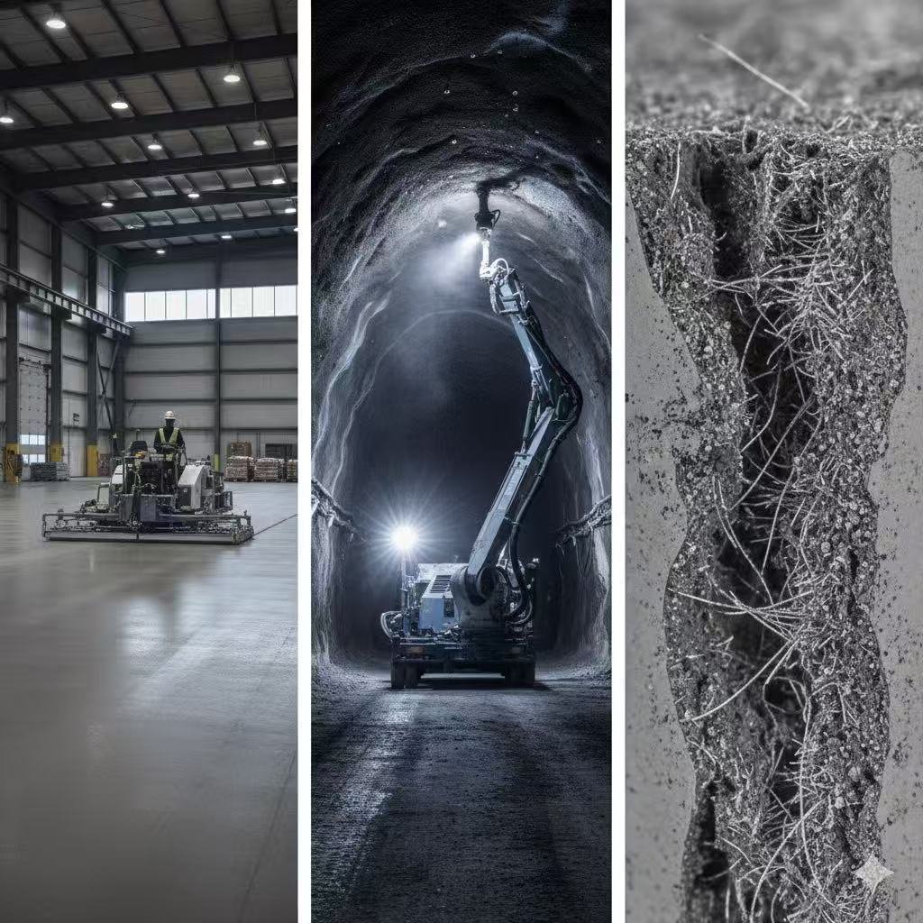 Tensile strength greater than 600 MPa. It reduces rebound rate and ensures maximum safety during sprayed concrete construction. Designed specifically for precast concrete and tunnel segments, it improves initial structural integrity and reduces curing time.